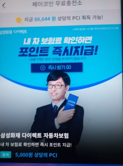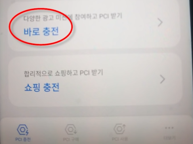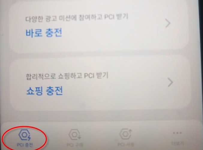 메인 화면에 좌측하단 PCI 충전을 누르고