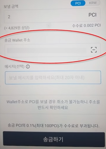 월렛 송금하기 누르고