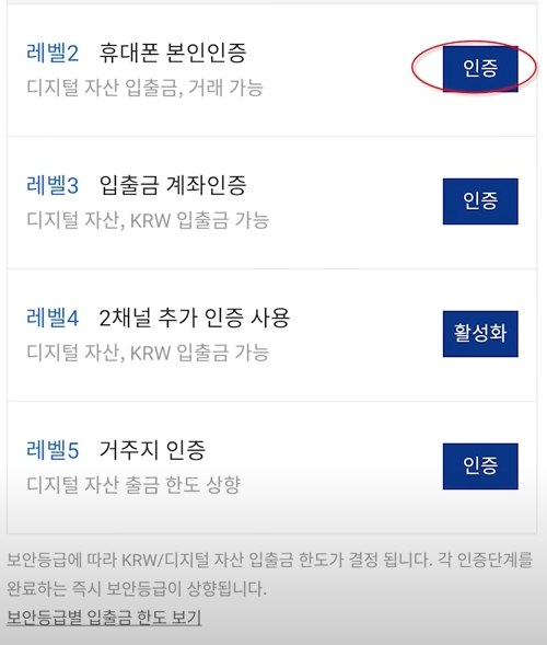 하단 보안등급 상향하기를 누르고